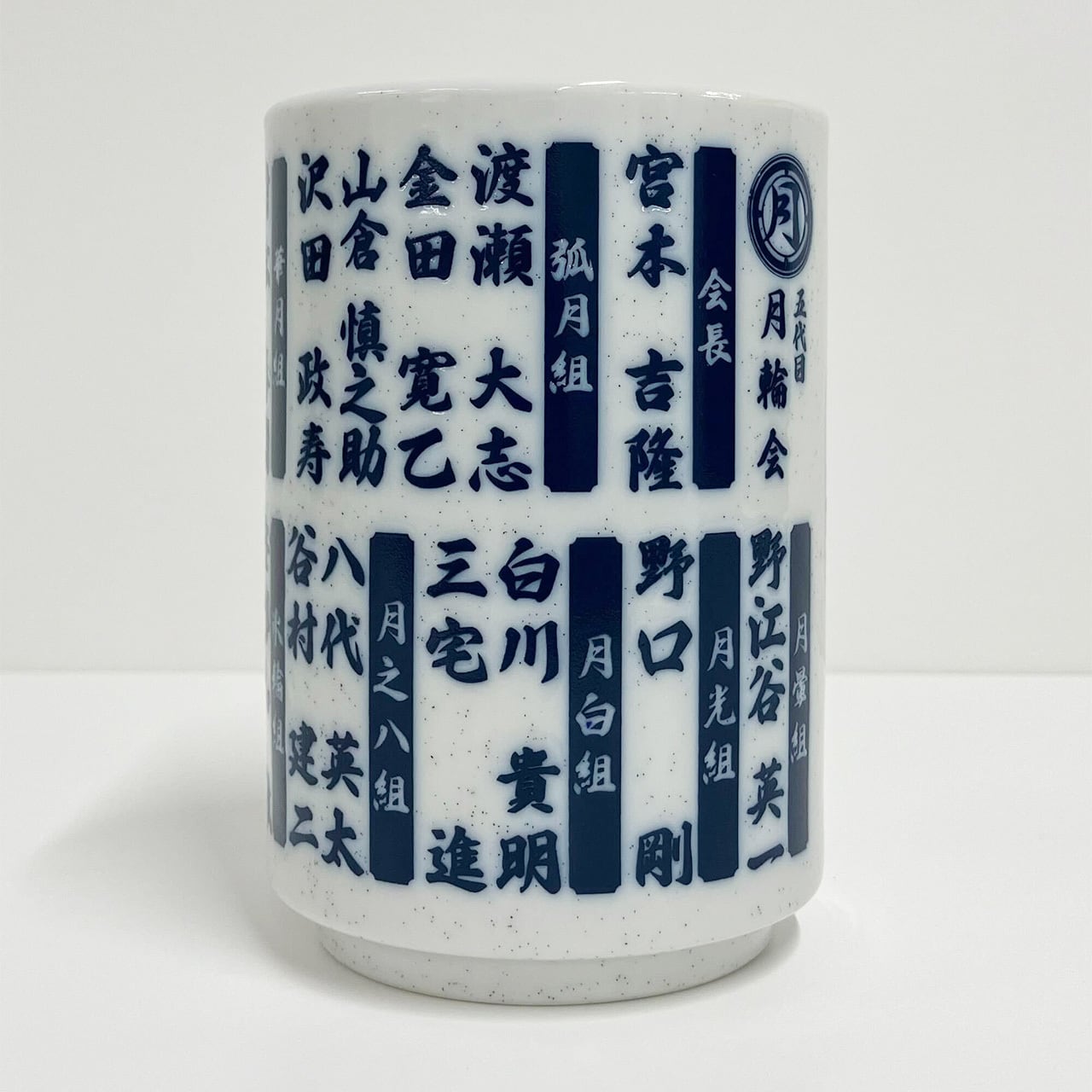 五代目月輪会の組員の名前がプリントされた、これぞドンケツらしい湯のみ! <商品仕様> ・カラー:白 ・素材:陶器 ・サイズ:口径約80×高さ114(㎜) ・容量:約380㎖